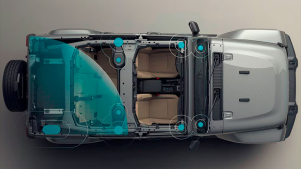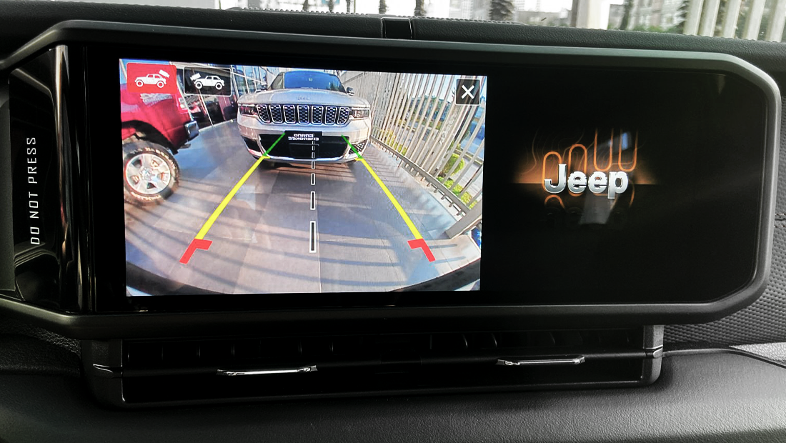 A través de una cámara posterior y sensores ubicados en el parachoque, el sistema entrega alertas visuales y auditivos tanto en la computadora de viaje como en el sistema multimedia.