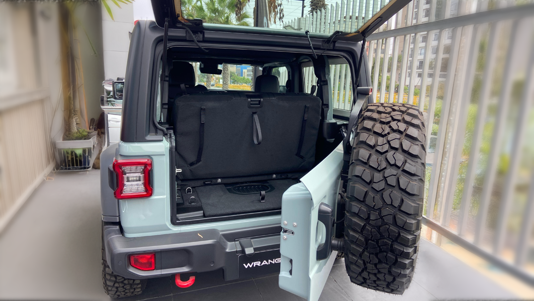 El baul de la Wrangler cuenta con una capacidad de 589 litros sin los asientos abatidos y con 1.910 litros con la segunda fila de asientos abatida.